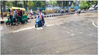 7 Apr, 2026 09:44 PM ISTभोपाल में लोक भवन के सामने सड़क धंसी, पानी बहने...