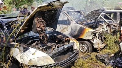 मोहाली: फोर्टिस अस्पताल के पास बुधवार दोपहर को मोहाली के फेज-8 थाने में दर्ज माल मुकदमे में जब्त की गई गाड़ियों में अचानक आग लग गई। आग लगने के कारणों...