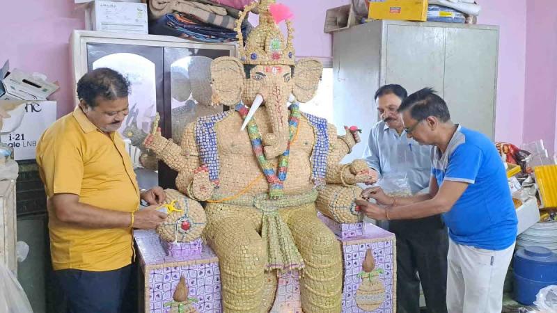सोयाबीन से बनी 51 हजार दानों की गणपति प्रतिमा, पर्यावरण संरक्षण का दिया संदेश