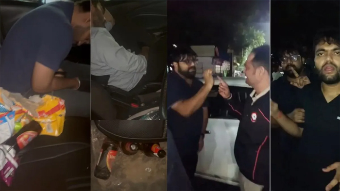 वायरल वीडियो में एक डॉक्टर पुलिसकर्मी से अभद्रता करते हुए कहता नजर आ रहा है, “2016 से यहां हूं, तुम कौन हो, मैं 10 थाना के अधिकारियों को जानता हूं।” वीडियो में कार की छत पर बीयर की बोतल रखी दिख रही है। दो डॉक्टर कार में नशे में धुत पड़े हैं और बीयर व स्नैक्स चारों ओर बिखरे हुए हैं।