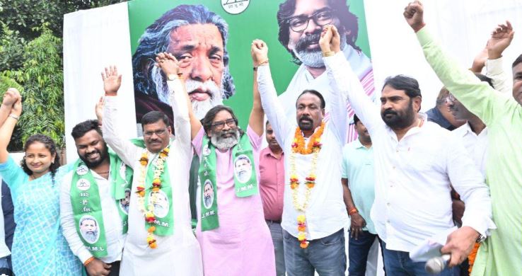 हेमंत सोरेन की मौजूदगी में भाजपा नेताओं ने थामा झामुमो का झंडा