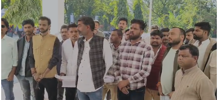 सागर में पुलिस की कार्यप्रणाली से नाराज करणी सैनिकों ने एसपी ऑफिस पर प्रदर्शन कर कीर्तन किया