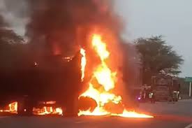 बीकानेर में दर्दनाक हादसा, ट्रक से टकराई बस में लगी आग