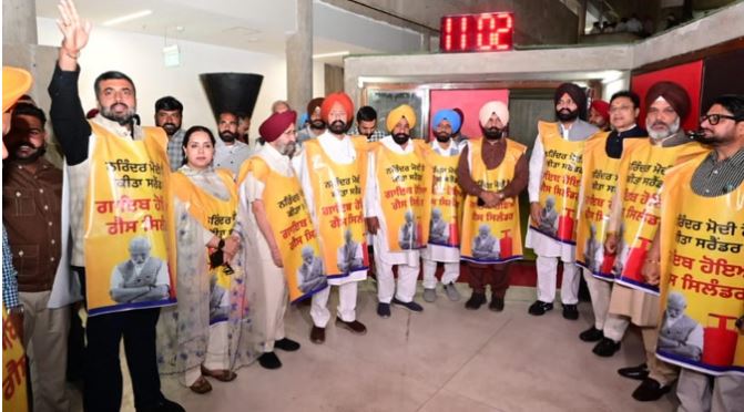 एलपीजी गैस के संकट को लेकर आप विधायकों ने वेल में आकर प्रदर्शन किया। हंगामे के चलते सदन को 20 मिनट के लिए स्थगित कर दिया गया। चीमा ने कहा कि प्रधानमंत्री की विदेश नीति फेल हो रही है। वे विदेश दौरे करके आते हैं लेकिन देश को इस तरह के संकट में झोंक दिया है। पीएम ने देश को बर्बाद करने का काम किया है। सबसे ज्यादा महंगाई बढ़ रही है। स्पीकर ने कहा कि पता नहीं केंद्र पर कौनसा दबाव था कि आज एलपीजी सिलिंडर नहीं मिल रहे हैं। पता नहीं कौनसी मजबूरी थी कि अमेरिका से तेल खरीदने का फैसला लिया।