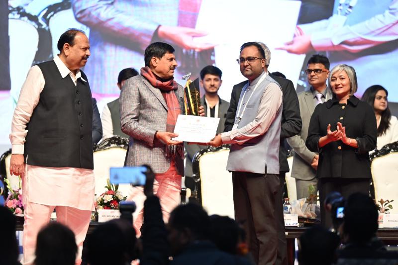 भोपाल। कलचुरी एलएनसीटी ग्रुप इनक्यूबेशन सेंटर (केएलआईसी-एलएनसीटी) को एमपी स्टार्टअप समिट 2026 में प्रथम उपविजेता (1st रनर-अप) पुरस्कार से सम्मानित किया गया। यह आयोजन एमपी स्टार्टअप सेंटर, भोपाल द्वारा किया गया। यह सम्मान कलचुरी एवं अनुपम इनक्यूबेशन सेंटर्स के मुख्य कार्यकारी अधिकारीआकाश एस. डी. राय ने माननीय मुख्यमंत्री मध्यप्रदेश डॉ. मोहन यादव के करकमलों से प्राप्त किया। इस अवसर पर माननीय एमएसएमई मंत्री चेतन्य कुमार काश्यप, मुख्य सचिव अनुराग जैन एवं एमपी स्टार्टअप सेंटर की कार्यकारी प्रमुख डॉ. आभा ऋषि उपस्थित रहीं।