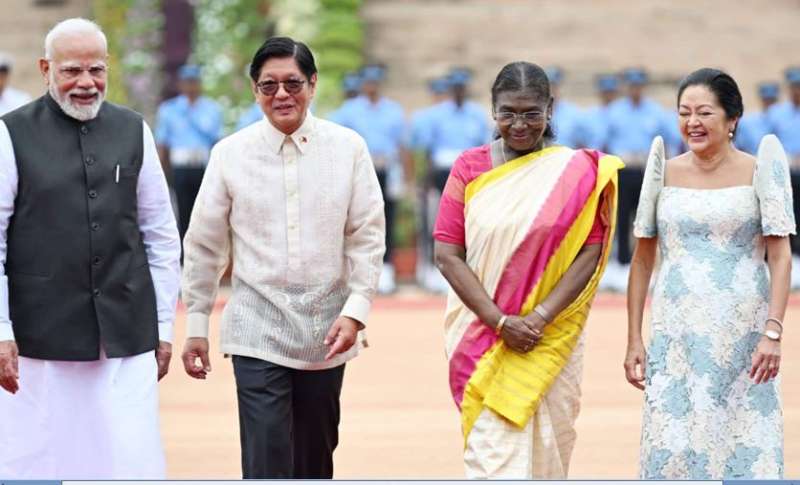 नई दिल्ली। फिलीपींस के राष्ट्रपति फर्डिनेंड आर. मार्कोस जूनियर इन दिनों भारत की पांच दिवसीय राजकीय यात्रा पर हैं। वह सोमवार को नई दिल्ली पहुंचे, जहां विदेश राज्य मंत्री पबित्रा मार्गेरिटा ने उनका औपचारिक स्वागत किया। यात्रा के दूसरे दिन मंगलवार को उन्होंने प्रधानमंत्री नरेंद्र मोदी से हैदराबाद हाउस में मुलाकात की। इस दौरान राष्ट्रपति द्रौपदी मुर्मू भी विशेष रूप से मौजूद रहीं।