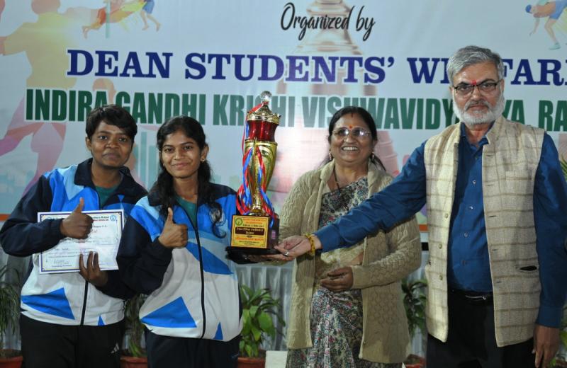 रायपुर : इंदिरा गांधी कृषि विश्वविद्यालय, रायपुर में 08 से 11 दिसम्बर 2025 तक आयोजित विश्वविद्यालयीन चार दिवसीय खेल कुम्भ का कल यहां समापन हुआ। कृषि महाविद्यालय, रायपुर के स्पार्ट्स कॉम्पलैक्स में चार दिवसीय खेल कुम्भ के समापन समारोह के मुख्य अतिथि डॉ. एस.एस. सेंगर ने विभिन्न खेल स्पर्धाओं में विजेता प्रतिभागियों को पुरस्कार एवं प्रमाण पत्र देकर सम्मानित किया। कार्यक्रम की अध्यक्षता अधिष्ठाता छात्र कल्याण डॉ. संजय शर्मा ने की। इस विश्वविद्यालयीन खेल-कूद प्रतियोगिता में इंदिरा गांधी कृषि विश्वविद्यालय के पूर्व, पश्चिम, उत्तर एवं दक्षिण जोन के अंतर्गत आने वाले समस्त महाविद्यालयों के 160 प्रतिभागी शामिल हुए। विश्वविद्यालयीन खेल कुम्भ में ईस्ट जोन 174 अंक प्राप्त कर ओवर ऑल चैम्पियन रहा, वहीं 91 अंक के साथ साऊथ जोन ओवर ऑल रनर अप रहा। सर्वश्रेष्ठ बालिका एथलीट का खिताब ईस्ट जोन की कुमारी संध्या नेताम तथा सर्वश्रेष्ठ बालक एथलीट का खिताब ईस्ट जोन के ही श्री कुनाल रावटे को प्रदान किया गया। समापन समारोह में कृषि महाविद्यालय रायपुर की अधिष्ठाता डॉ. आरती गुहे, कृषि अभियांत्रिकी महाविद्यालय के अधिष्ठाता डॉ. अजय वर्मा, निदेशक शिक्षण डॉ. ए.के. दवे, भी मौजूद थे। समापन समारोह में विभिन्न खेल स्पर्धाओं के निर्णायकगणों टीम मैनेजरों तथा आयोजन समिति के सदस्यों को भी सम्मानित किया गया। इस अवसर पर विश्वविद्यालयीन खेलकूद प्रतियोगिता में शामिल होने वाले समस्त चार जोन के खिलाड़ी टीम मैनेजर, रैफरी, शिक्षकगण अधिकारी एवं कर्मचारी उपस्थित थे। कार्यक्रम का संचालन डॉ. दीप्ती झा ने किया।